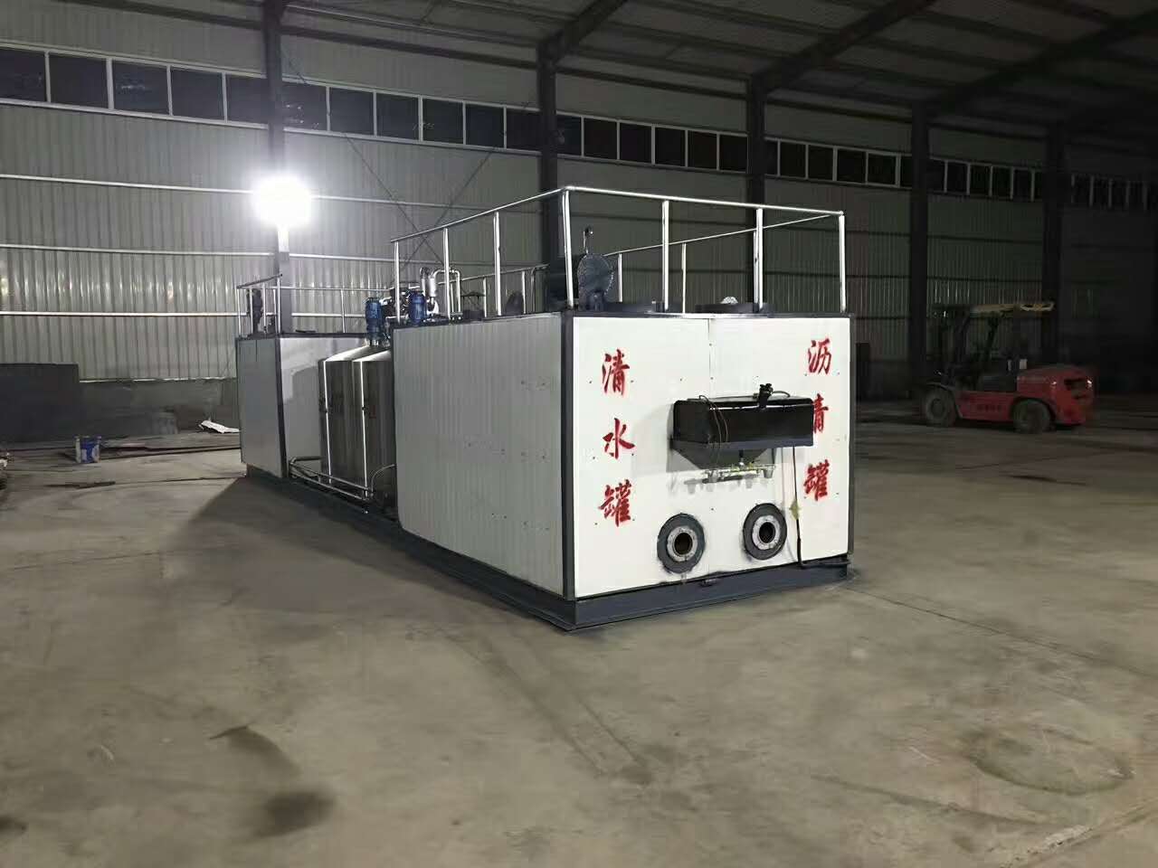 1、放置位置:改性瀝青設(shè)備應(yīng)該放置在平整的地方,前軸軸輪應(yīng)該用枕木固定,架空輪胎,是的機(jī)器在工作不亂動(dòng)。